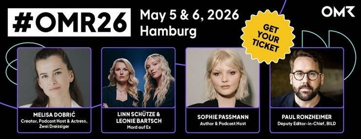 Preisverleihung des Deutschen Podcast Awards auf dem OMR Festival: Bereits eine Woche vor der offiziellen Verleihung des Deutschen Podcast Awards wird das beste Podcastformat in der Kategorie „Brand & Branded“ auf der OMR26-Bühne gekürt (14:40 Uhr, Halle B5). Der Deutsche Podcast Award und Podstars by OMR zeichnen die Kategorie in Zusammenarbeit mit dem Fachmedium Campaign Germany vor dem OMR-Publikum aus.